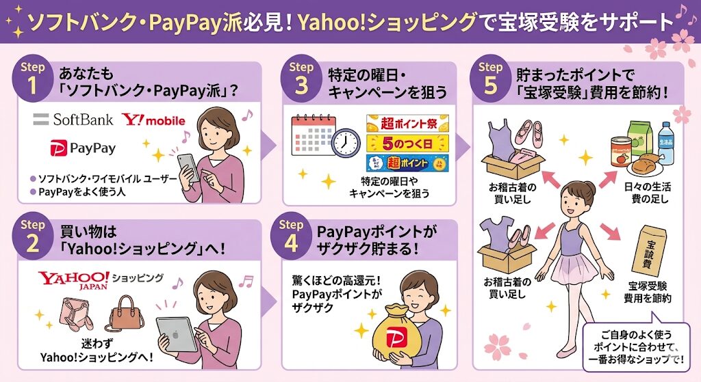 貯まったPayPayポイントで次のお稽古着を買い足したり、日々の生活費の足しにしたりと、宝塚受験で何かと出費がかさむ家計の大きな助けになってくれますよ。